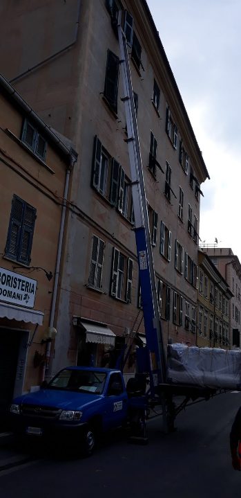 Traslochi Carozza, da quasi 30 anni punto di riferimento a Genova e Chiavari nel settore dei traslochi, offre il servizio di noleggio autoscala ed elevatori esterni per garantire maggior rapidità nell’esecuzione dei traslochi e per poter raggiungere agevolmente anche gli appartamenti ai piani alti dei palazzi senza necessità di ingombrare le scale con il rischio di danneggiare i mobili.